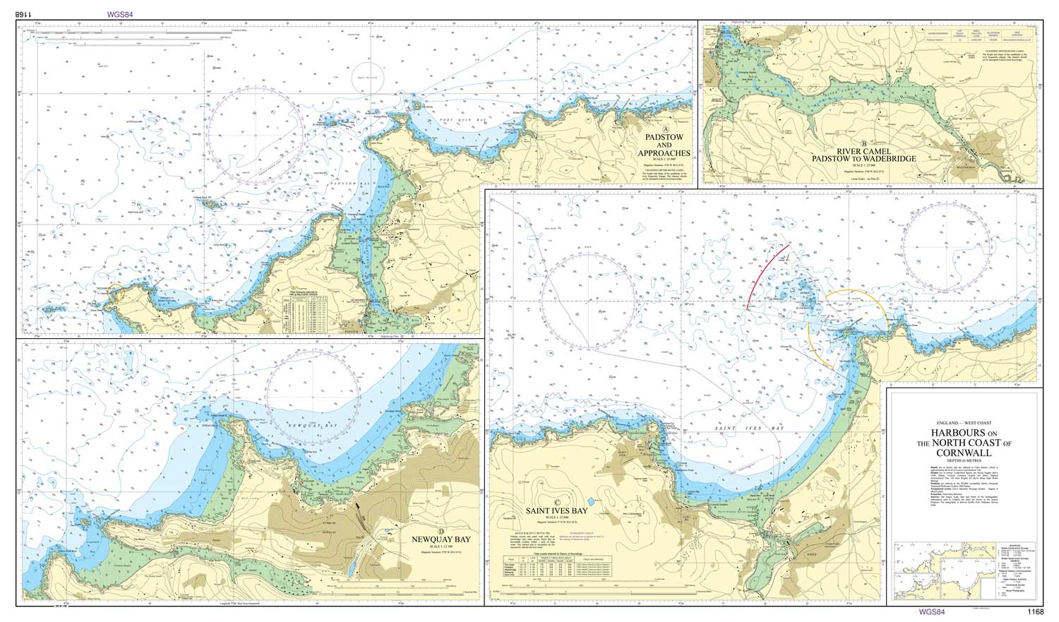 Harbours on the North Coast of Cornwall - Padstow, Wadebridge, St-Ives, Newquay (Marine Chart : 1168)